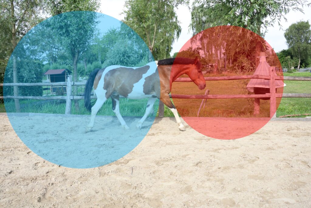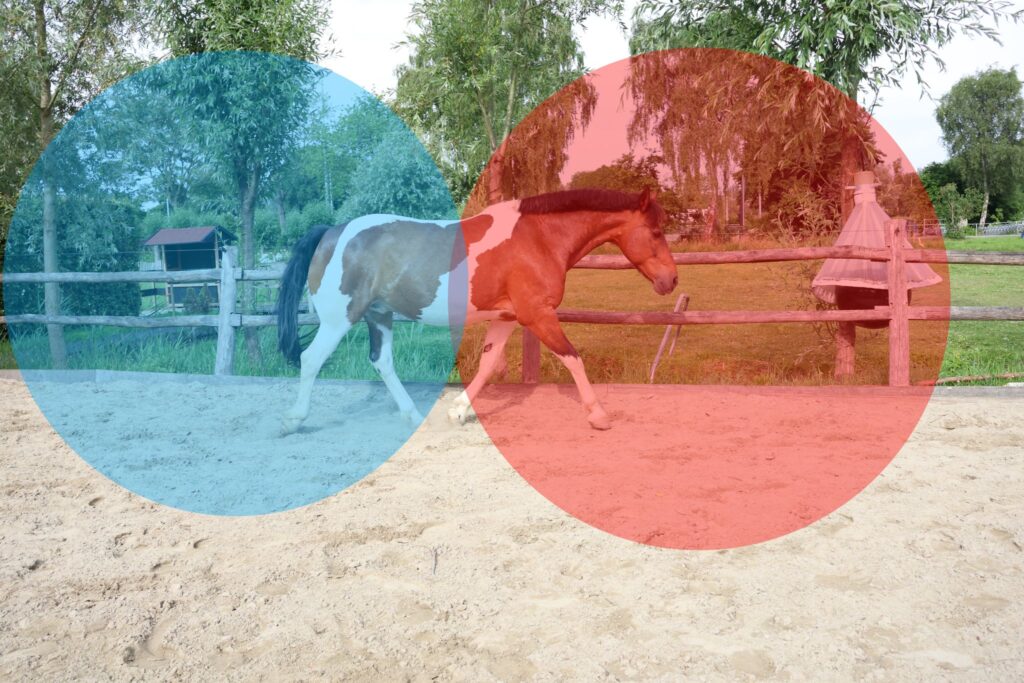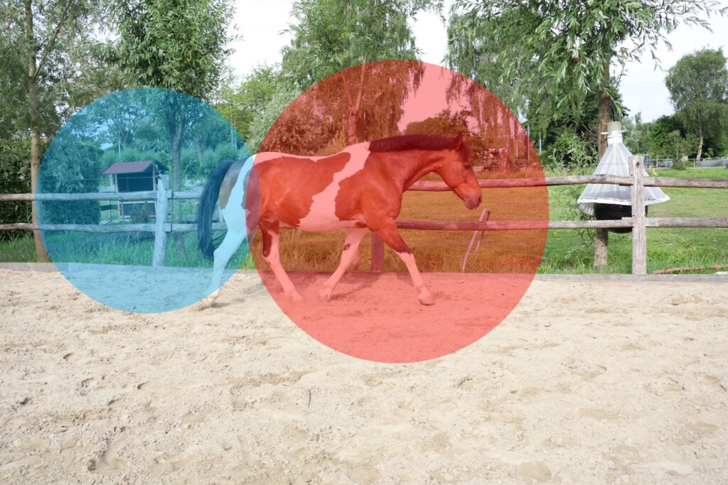 Deze cirkels verklaren waarom een paard soms probeert om te draaien of waarom je veel moeite moet doen om het paard in beweging te houden wanneer je dus kennelijk in het remmende gebied loopt.